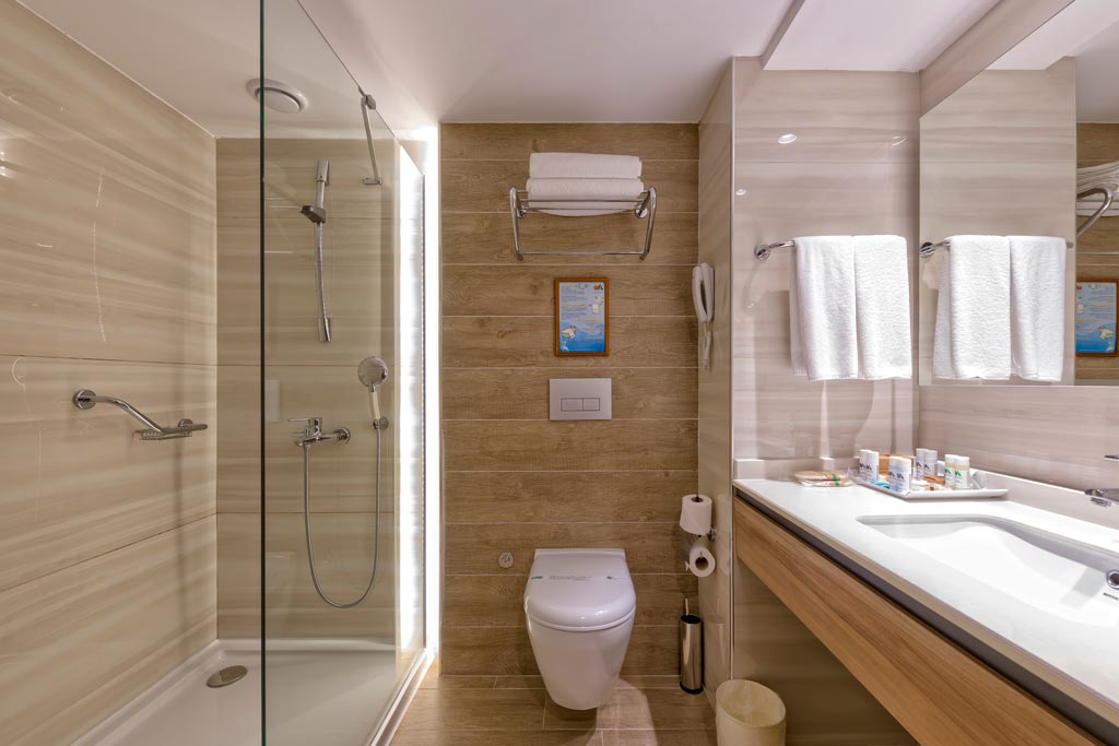 Has two bedrooms and equipped with: bathroom/shower, hair dryer, laminated or covered with ceramic tiled floors, balcony, air conditioning (central system), telephone, mini-bar (water, beer and soft drinks), safe, 84“ LCD TV with satellite broadcasting , WI-FI.
